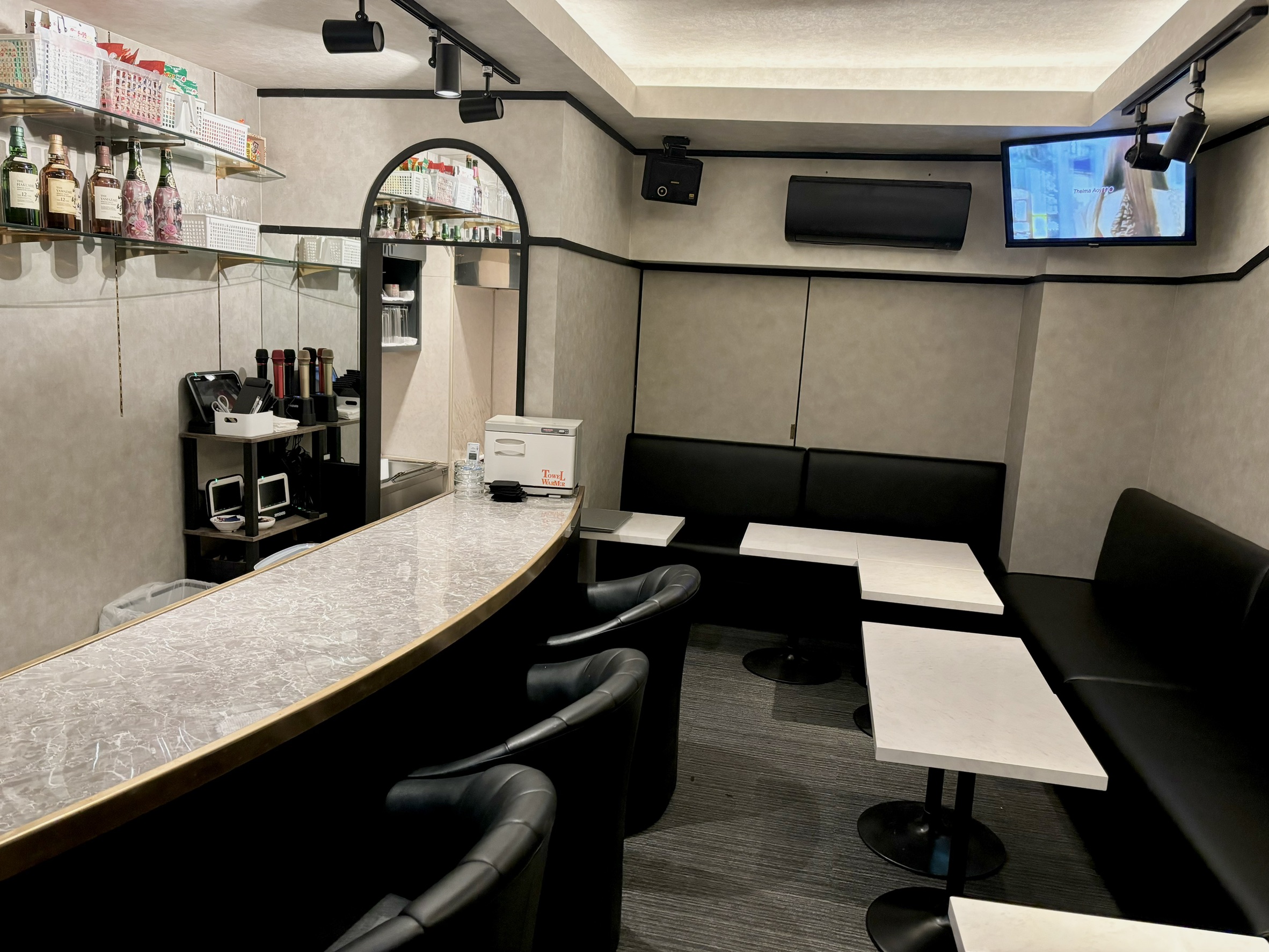 ドアを開けるとママやスタッフが笑顔でお出迎え。初めての旨を伝えれば丁寧に案内してくれます。 - 着席